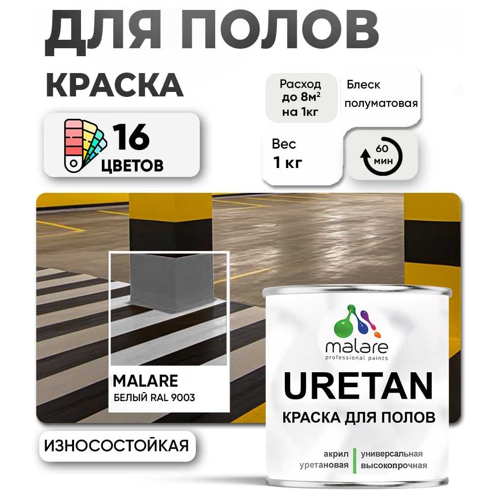 Краска MALARE URETAN для пола, полуматовая, белая, 1 кг 2015227118214
