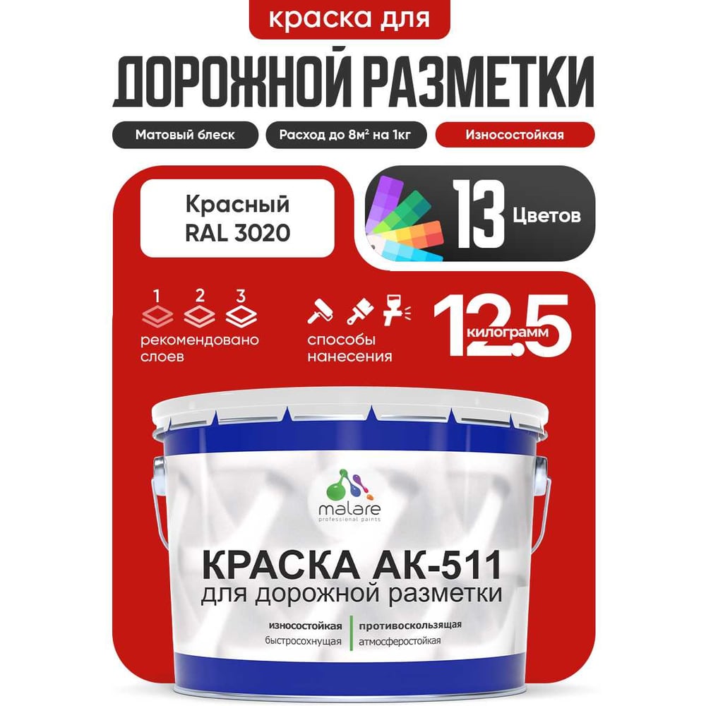 Краска MALARE АК-511 для дорожной разметки, красный, 12,5 кг КАК5113020М1250