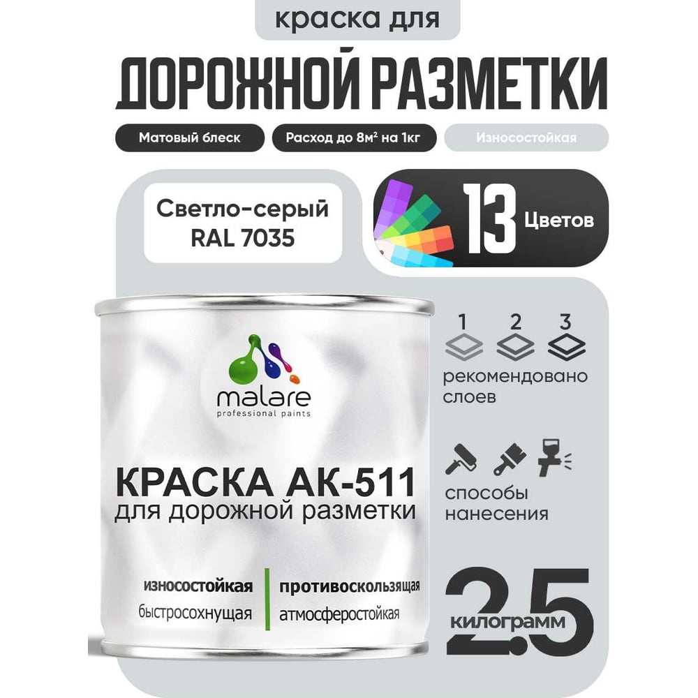 Краска MALARE АК-511 для дорожной разметки, светло-серый, 2,5 кг КАК5117035М0250