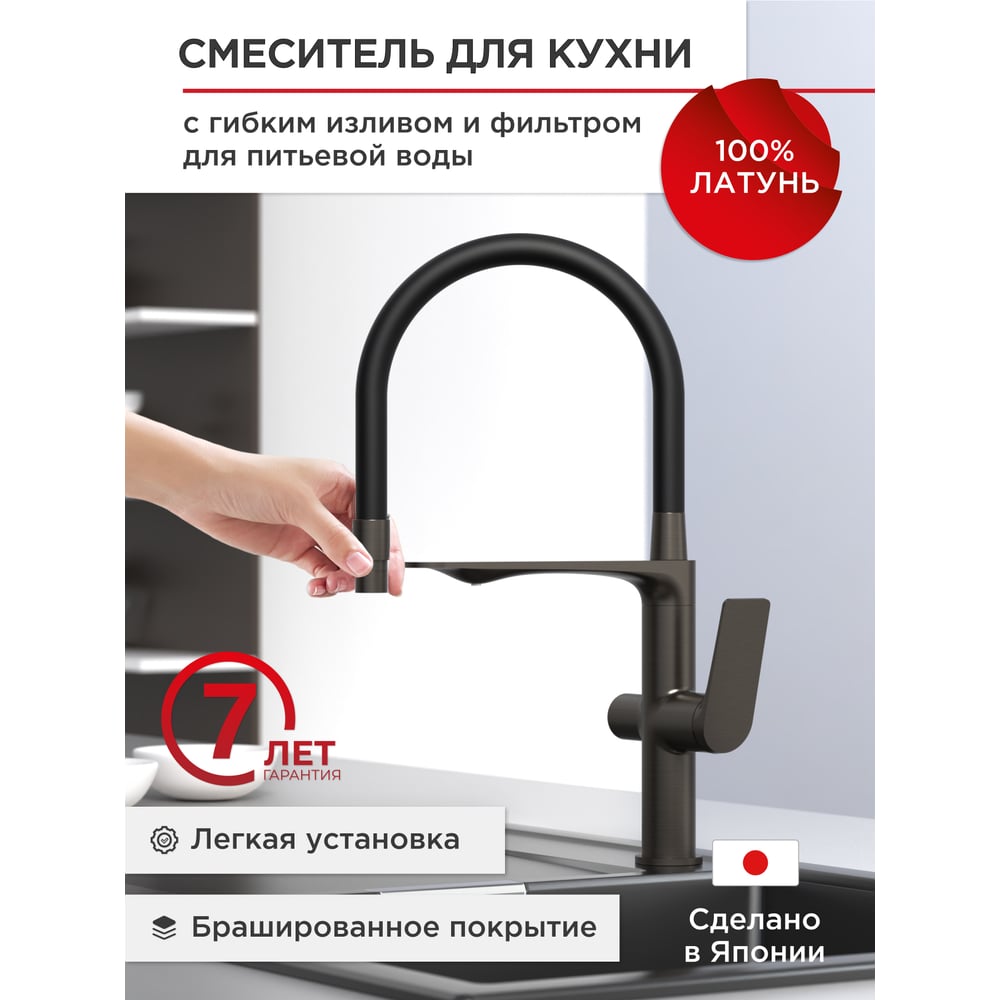 Смеситель для кухни с гибким изливом и фильтром для питьевой воды Tokito TOK-MIT-1012GM