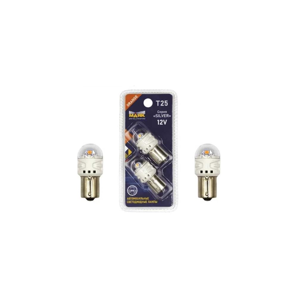 Автомобильная светодиодная лампа МАЯК T25 патрон BAU15S для противотуманных фар, стоп-сигналов, указателей поворота 12T25-OR/SL15/2BL