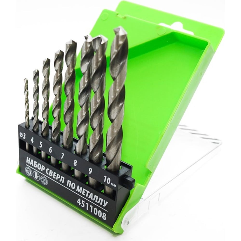 Набор сверл по металлу 8 шт, 3, 4, 5, 6, 7, 8, 9, 10 мм Pobedit 4511008