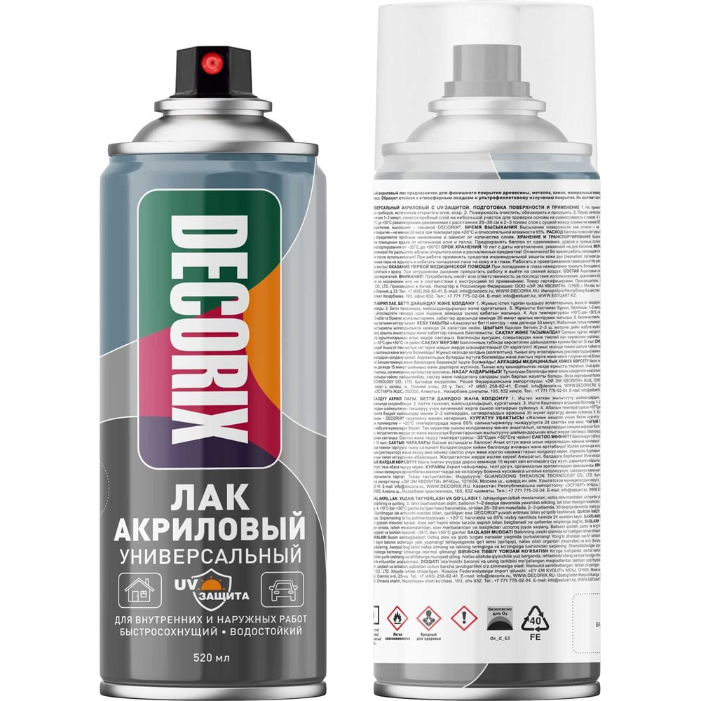 Аэрозольный лак универсальный Decorix с UV-защитой, 520 мл, бесцветный матовый 0123-31 DX