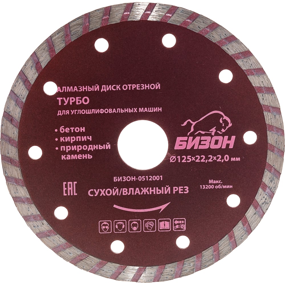 Диск алмазный отрезной ТУРБО по бетону (125х22.2 мм) БИЗОН 0512001