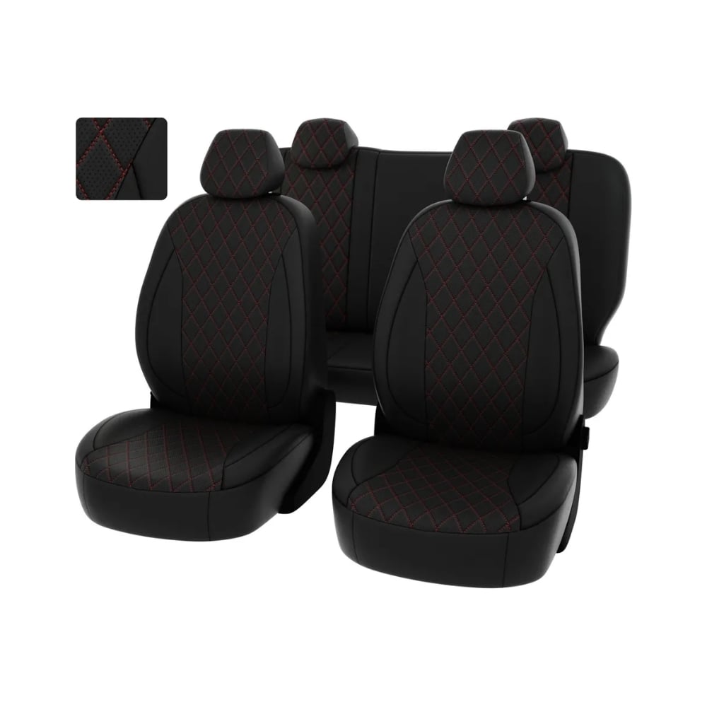 Чехлы PSV Lada Granta I 2011 2018 г Люкс 5 подголовников деленная спинка РОМБ отстрочка красная черная перфорированная экокожа Статус 135883