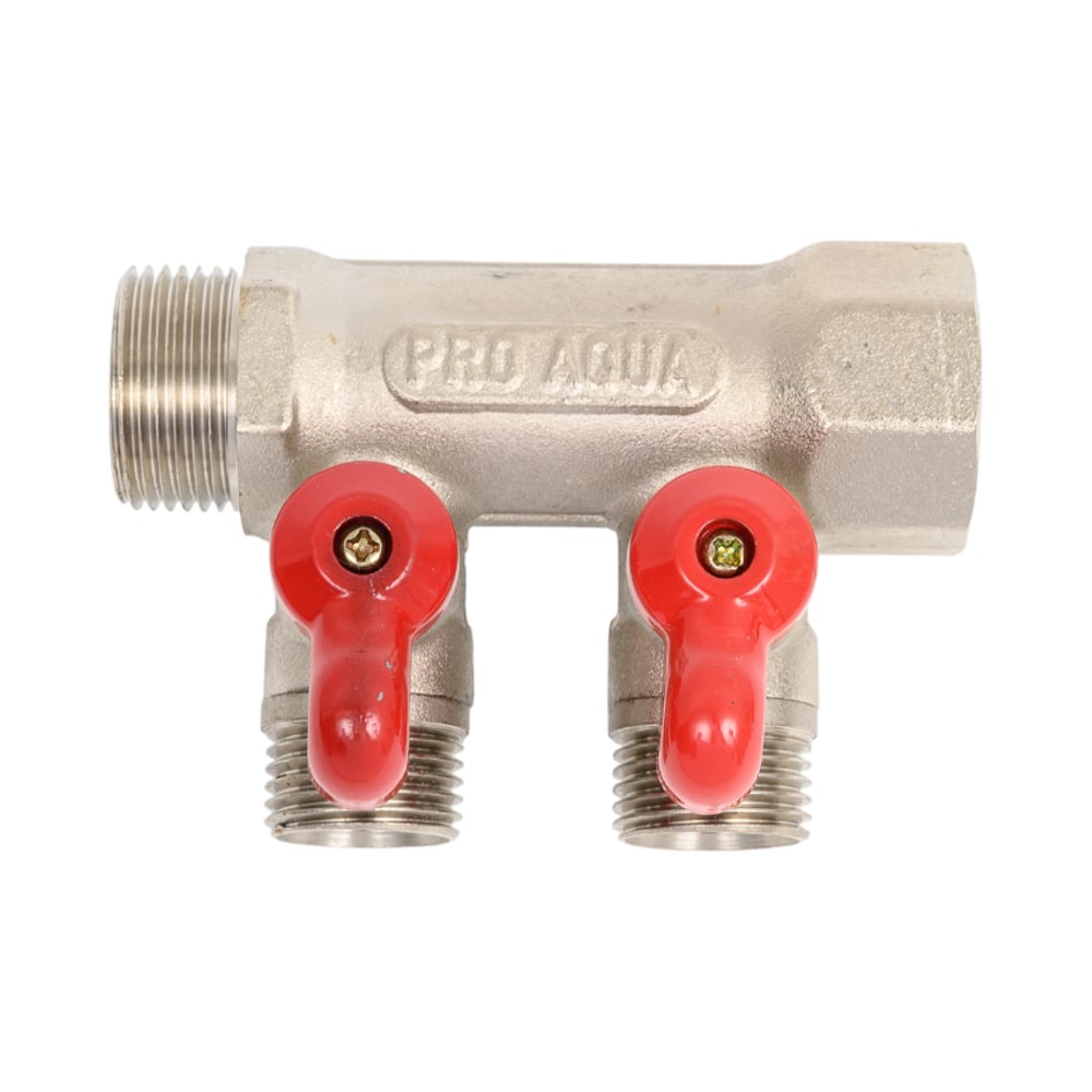 Коллектор с отсекающими кранами (плоскость) PRO AQUA 3/4, 2 х 1/2 V100.02-m20-f20