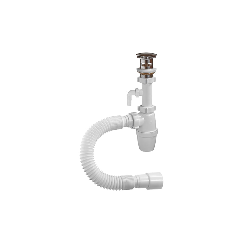 Бутылочный сифон ORIO 1 1/4x40 с металлическим выпуском клик-клак, с отводом, с гибкой трубой 40-40/50 А-32035