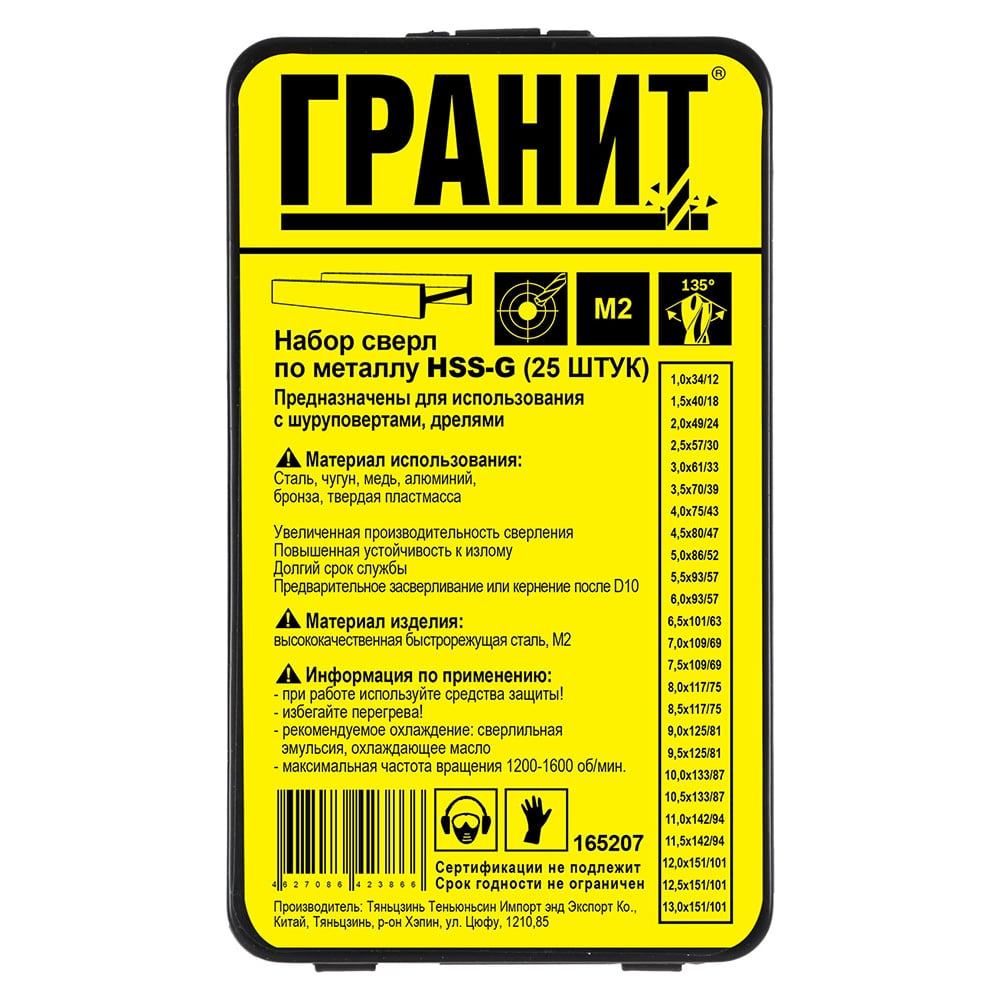 Гранит набор сверл по металлу hss-g из 25 штук метал.упаковка 165207