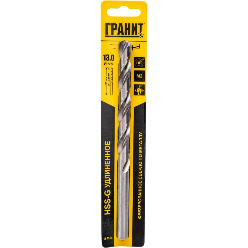 Сверло по металлу HSS-G удлиненное (13.0х205/134 мм) ГРАНИТ 165064