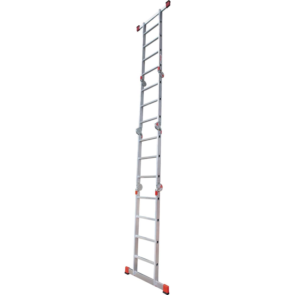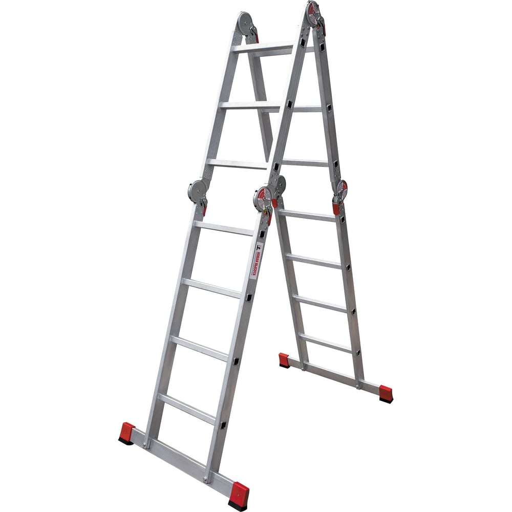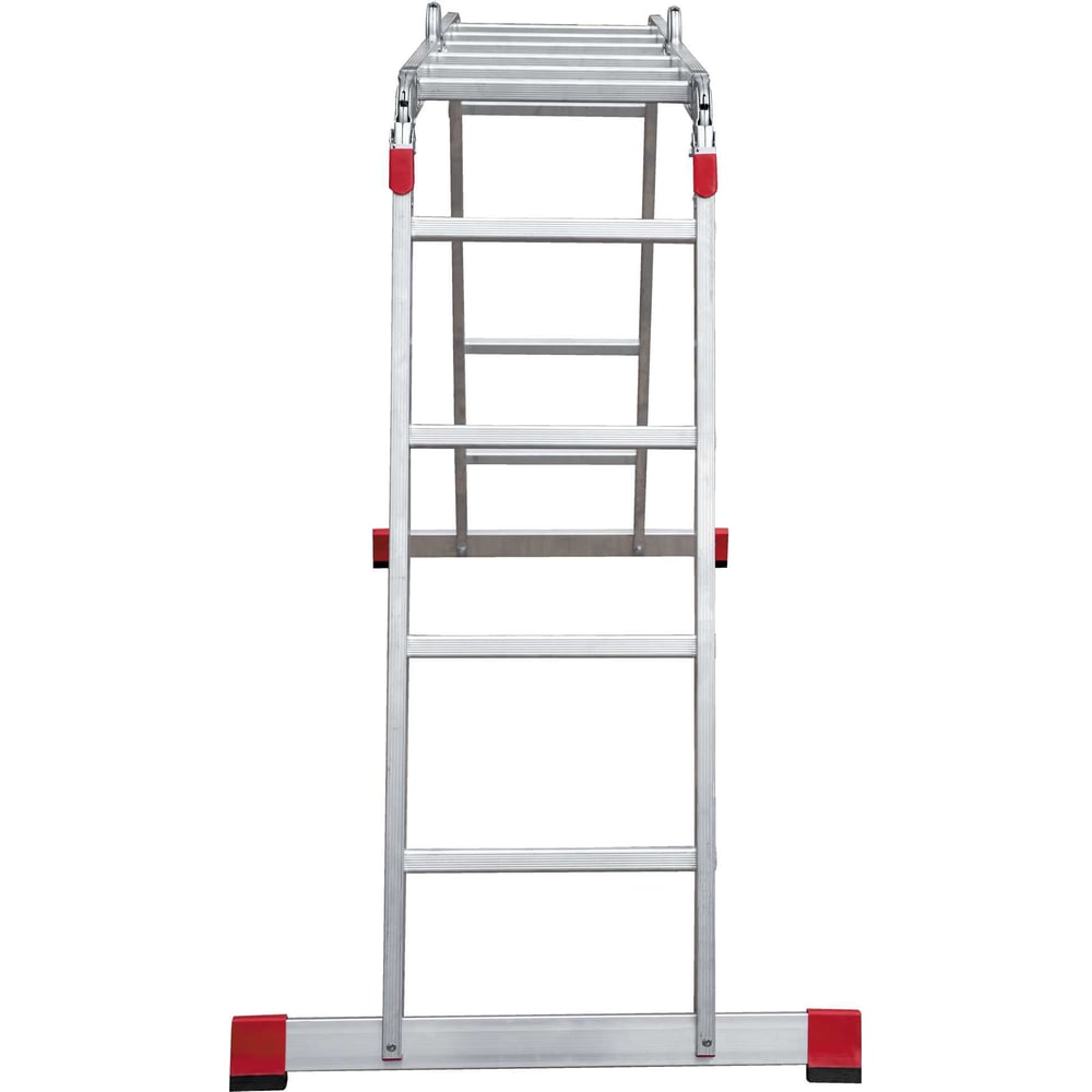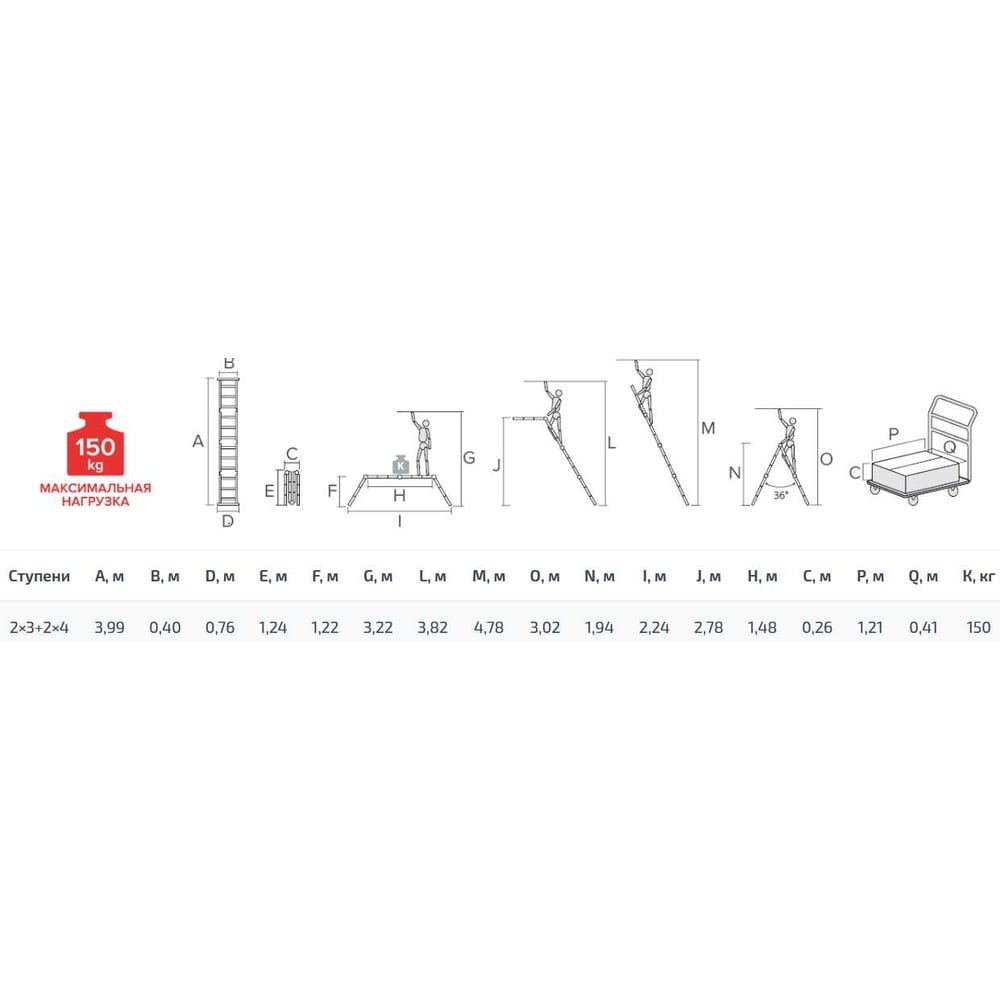 Габариты без упаковки 3940х400 мм Материал алюминий Тип трансформер Класс товара Профессиональный Вес нетто 14.2 кг Высота площадки 1.22 м Размер в сложенном состоянии 115х40х25 см Рабочая высота 4.78 м Max рабочая нагрузка 150 кг Общая длина 3.94 м Ширина ступеней 28 мм Ширина лестницы 400 мм min длина в сложенном состоянии 1.21 м Количество ступеней 2х4+2х3 шт Толщина профиля 1.25 мм Телескопическая нет Помост да Настил в комплекте нет Для разноуровневых поверхностей нет