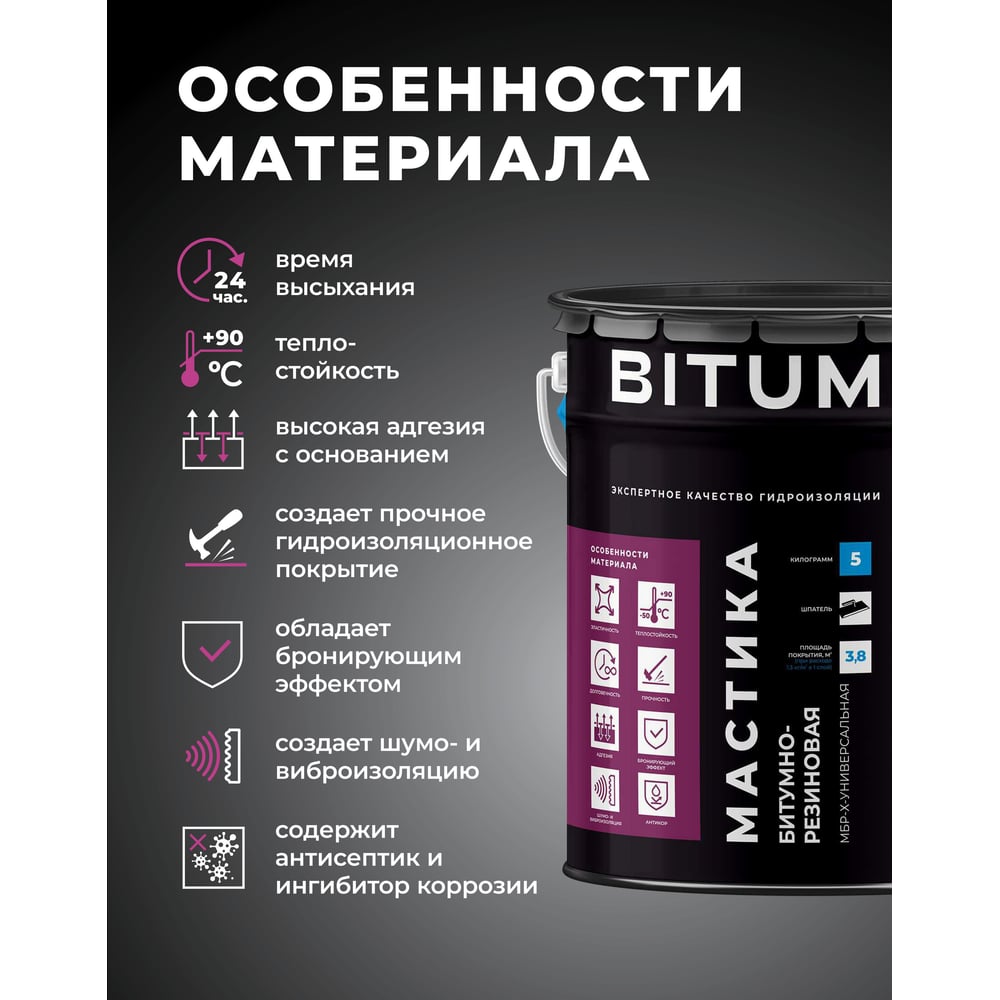 Мастика битумно-резиновая BITUMEX МБР-Х-универсальная ведро 5кг МБП-029