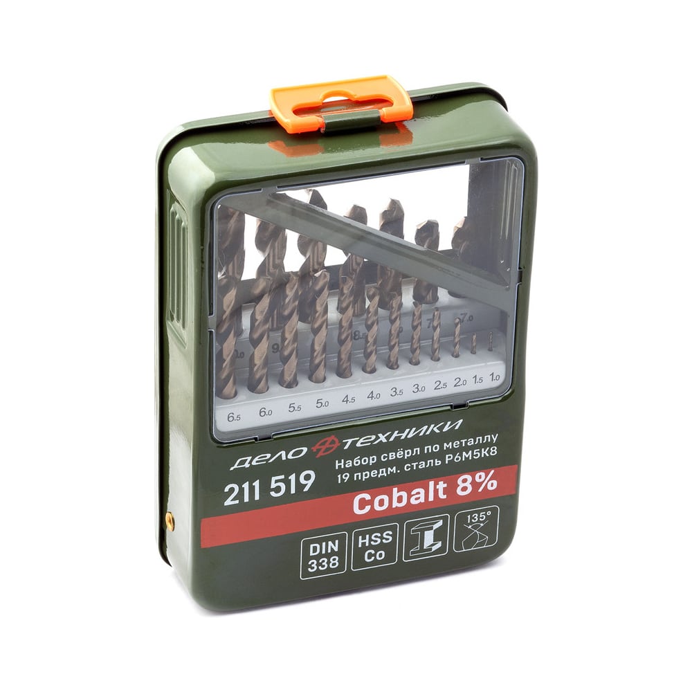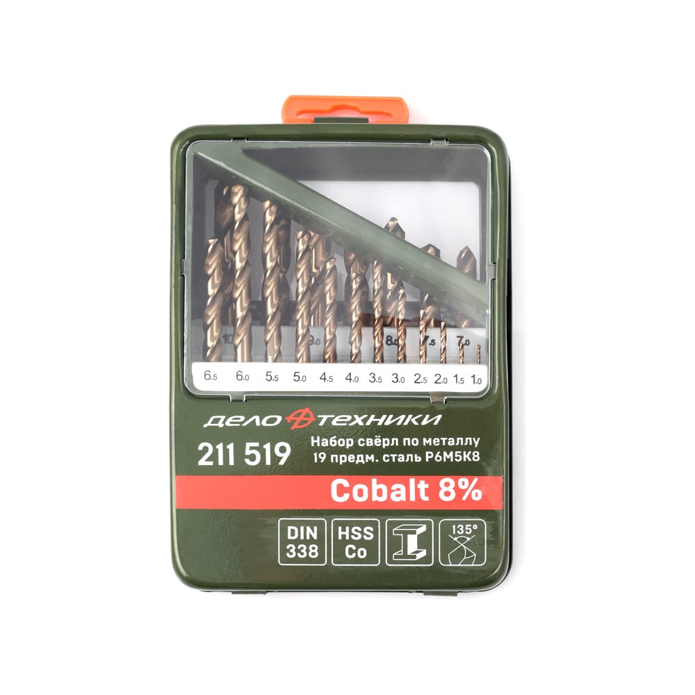 Набор сверл (19 шт; 1-10 мм; Cobalt 8) по металлу Дело Техники 211519