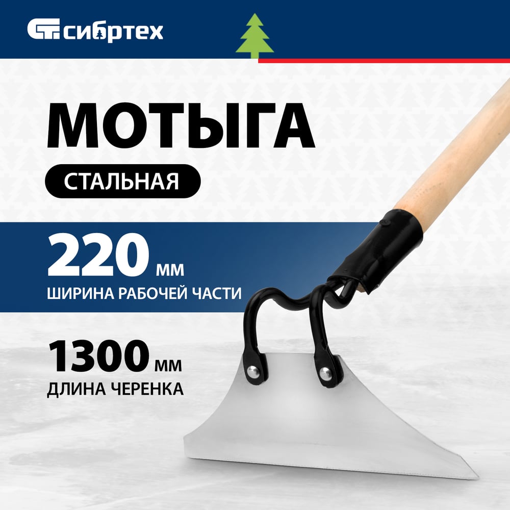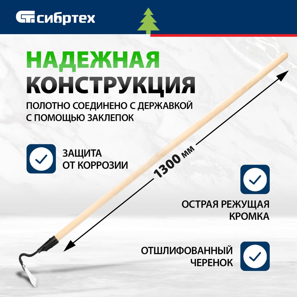 Мотыга СИБРТЕХ нержавеющая сталь, 220x85x1300 мм, деревянный черенок 62374