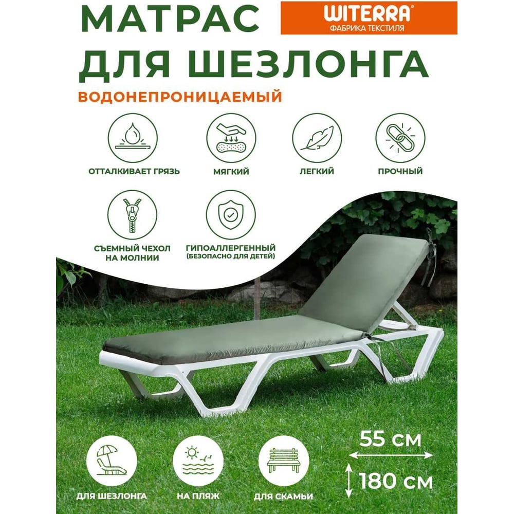Матрас для шезлонга Witerra 55х180х5 см, хаки, оксфорд 240 109716