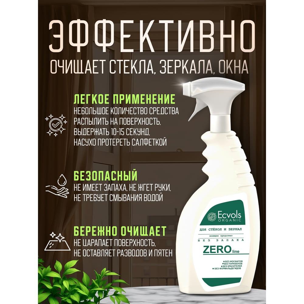 Гипоаллергенное средство для мытья стекол и зеркал Ecvols ZERO без запаха, 750 мл 00.00gl750