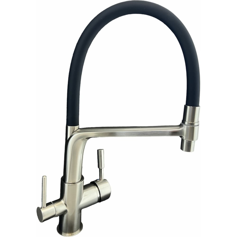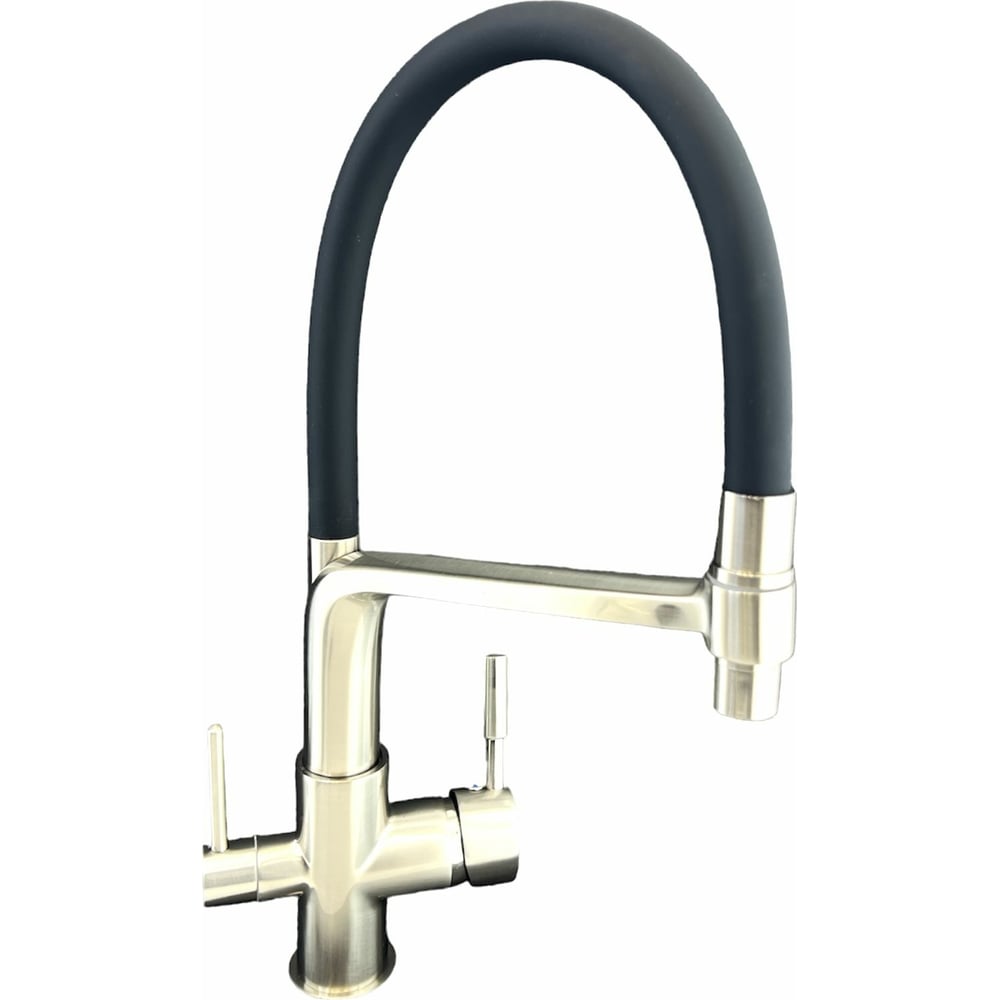 Смеситель для кухни OUTE с гибким изливом и дополнительным выводом под фильтр сатин T61303BL