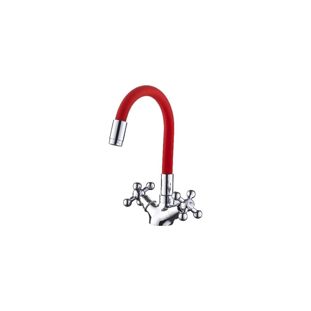 Смеситель для кухни LEDEME гибкий шланг, крест, красный, L1319-1 65840