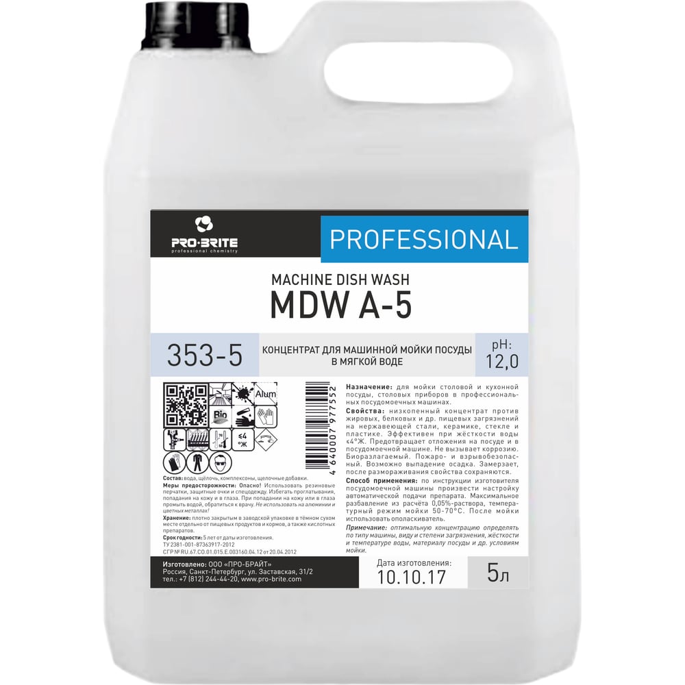 Концентрат для машинной мойки посуды и тары PRO-BRITE MDW A-5 353-5