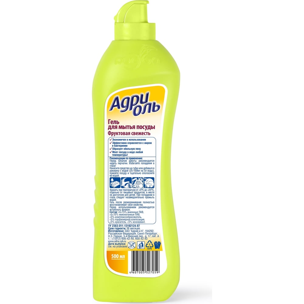 Средство для мытья посуды Адриоль 500 Фруктовая свежесть 1069874