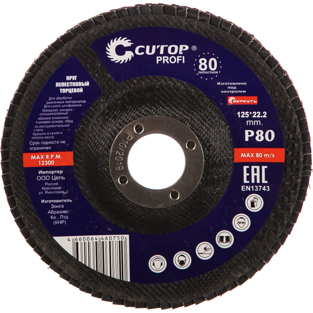 Круг лепестковый торцевой Profi 80 лепестков (125х22,2 мм; Р80) Cutop 70-12580