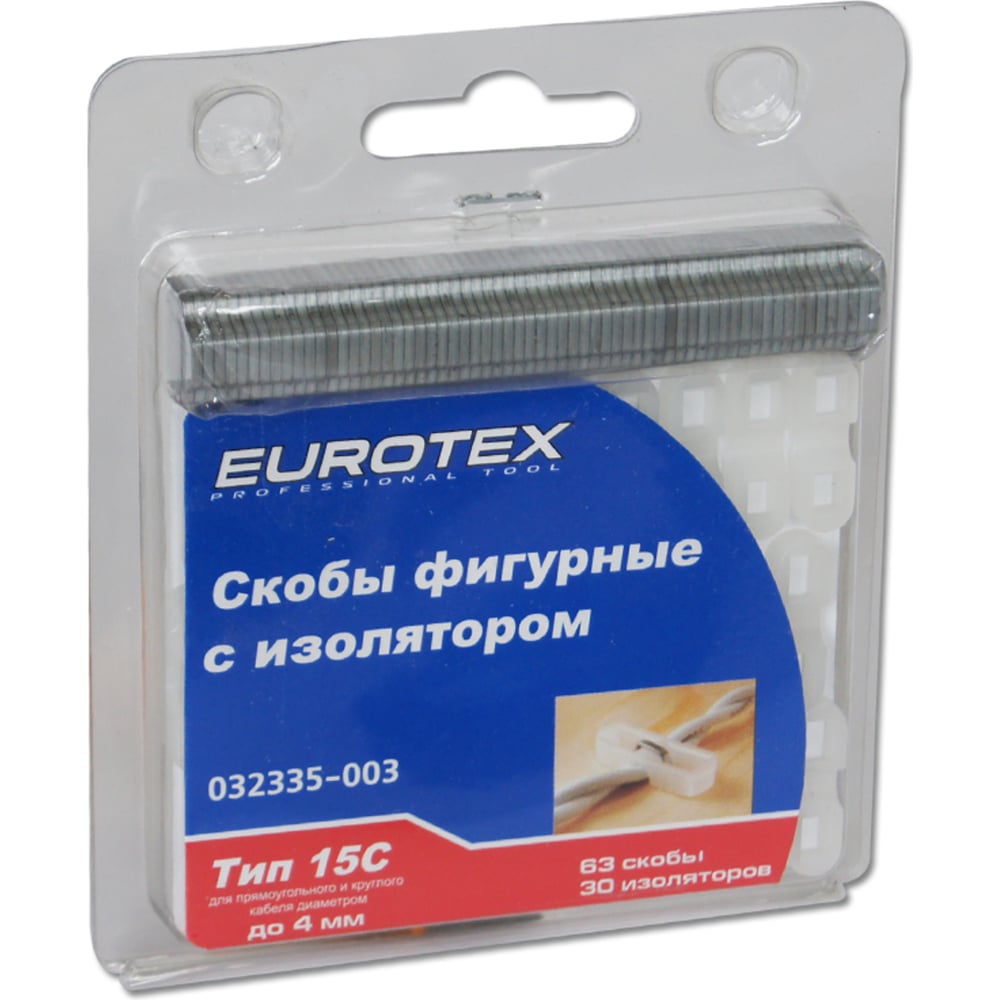 Скобы закаленные ТИП 15C, фигурные c изолятором для прямоугольного и круглого кабеля шириной до 4 мм EUROTEX 032335-003