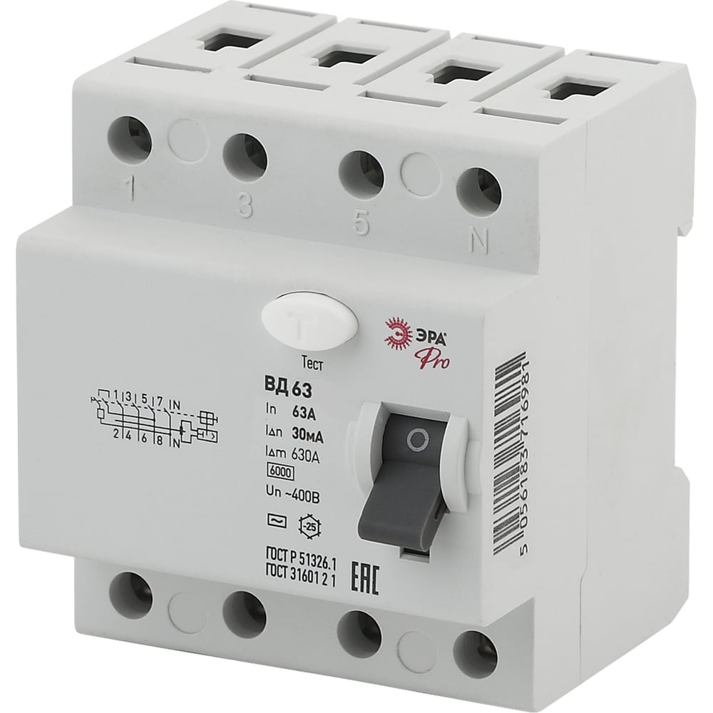 Устройство защитного отключения ЭРА Узо no-902-135 вд63 4р, 63а, 30ма Б0031956