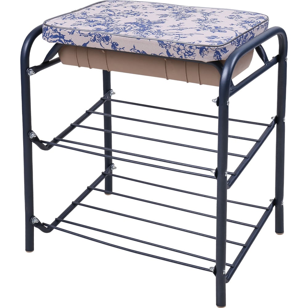 Габариты без упаковки 330х516х440 мм Высота 516 мм Ширина 330 мм Вес нетто 4.4 кг Зеркало есть Глубина 440 мм Количество полок 2 шт Закрытая нет Количество ящиков 0 шт Материал каркаса металл Наличие колес нет С сиденьем есть Цвет каркаса черный Покрытие фасадов матовое Цвет полок/фасада бежевый/голубой Тип обувницы банкетка Материал полок/фасада металл/ткань
