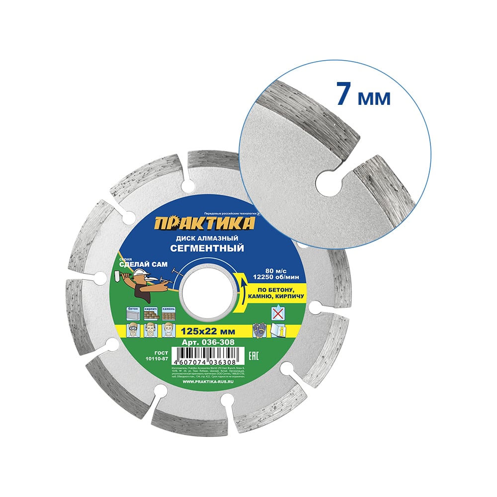 Диск алмазный сегментный (125х22.2 мм) ПРАКТИКА 036-308