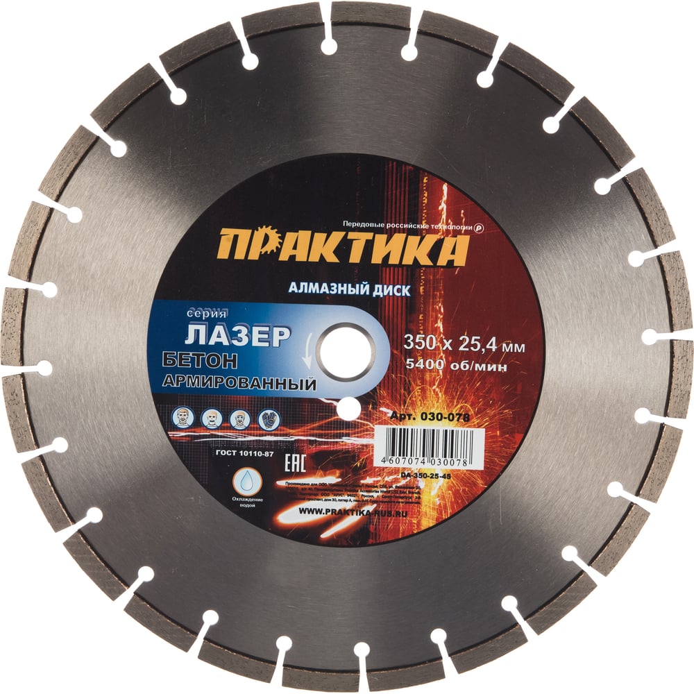 Диск алмазный сегментный Лазер-45 по бетону (350х25.4 мм) ПРАКТИКА 030-078