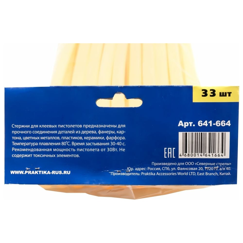 Клей жёлтый, прозрачный (33 шт; 11х300 мм) для клеевого пистолета ПРАКТИКА 641-664