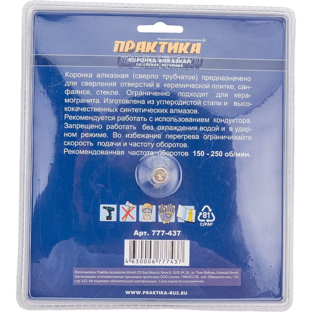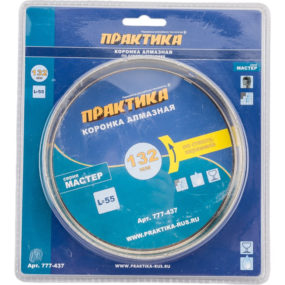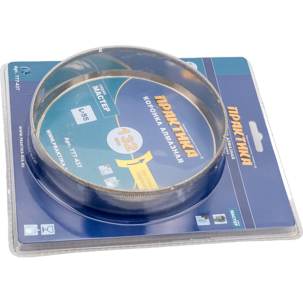 Практика коронка алмаз по стеклу керамике 132мм блистер 777-437