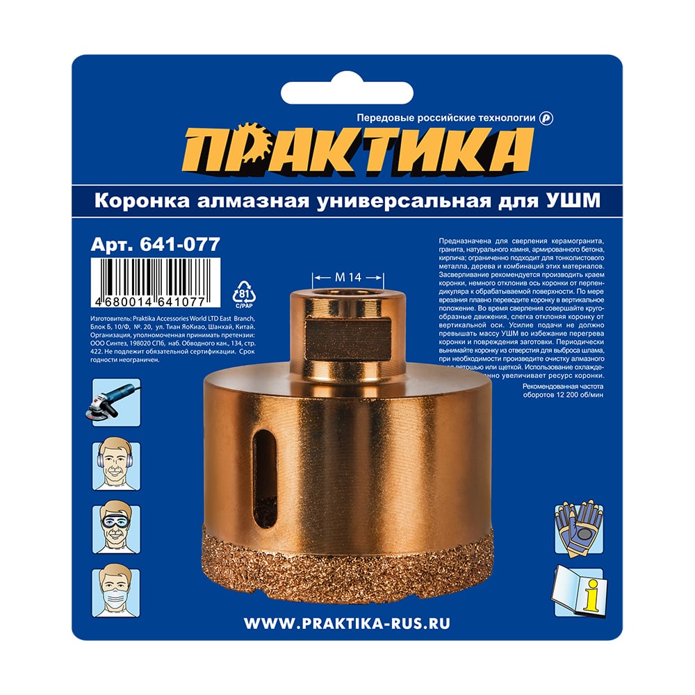Практика коронка алмаз универ 68мм для ушм м14 641-077