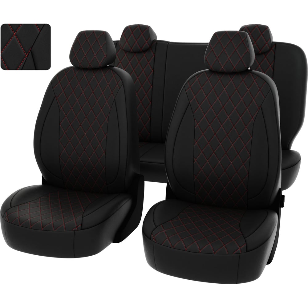 Чехлы PSV Lada Granta I 2011 2018 г Люкс 5 подголовников деленная спинка РОМБ отстрочка красная черная экокожа Статус 135879