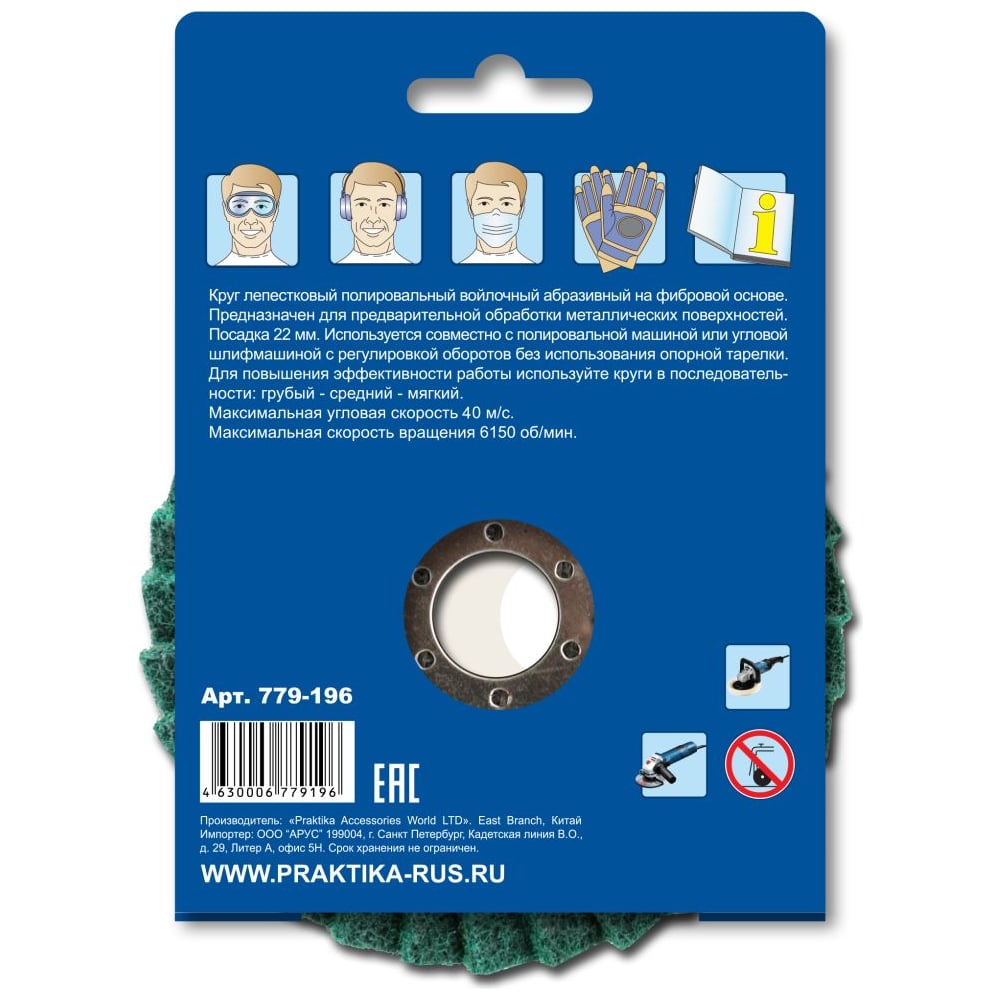 Круг лепестковый полировальный (125х22.2 мм; мягкий) ПРАКТИКА 779-196