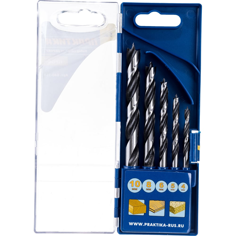 Набор сверл по дереву Профи (5 шт; 4, 5, 6, 8, 10 мм) ПРАКТИКА 640-353