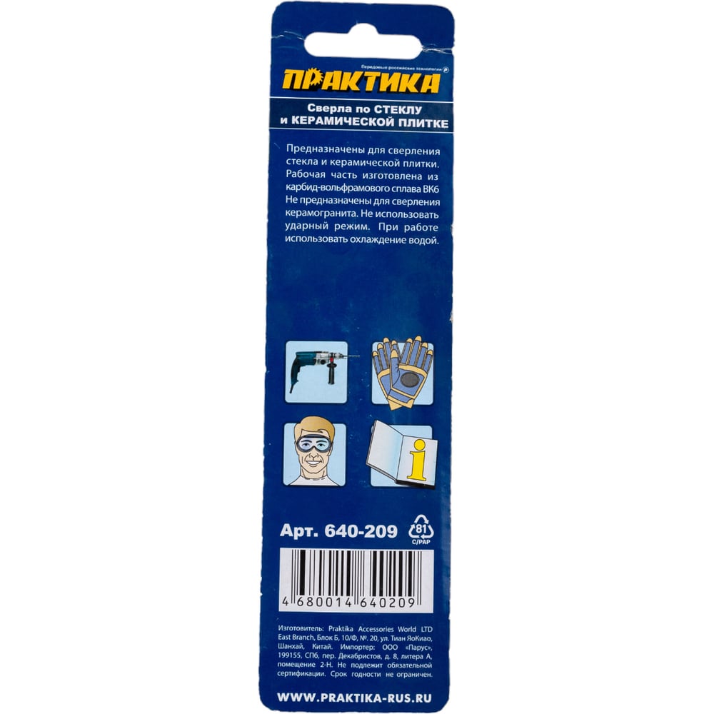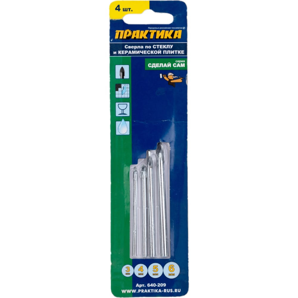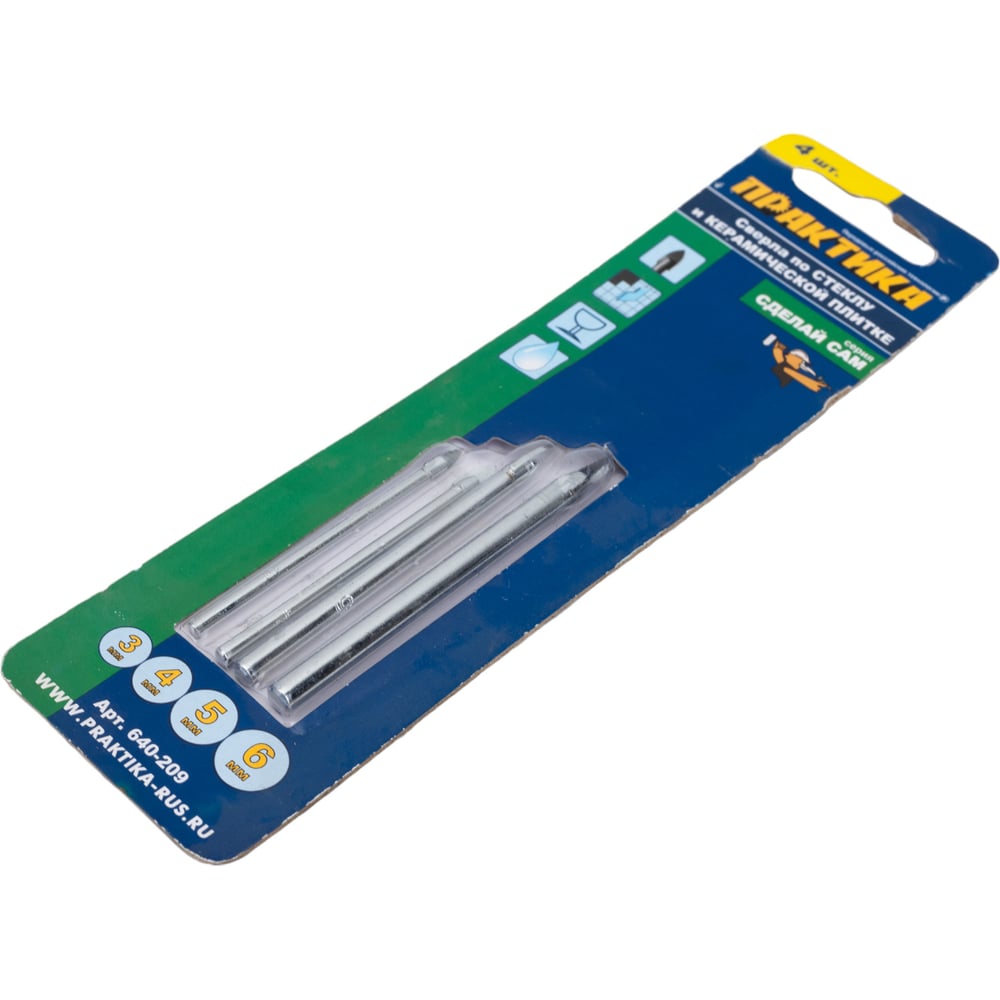 Набор сверл по стеклу и керамике Сделай сам (4 шт; 3-6 мм) ПРАКТИКА 640-209