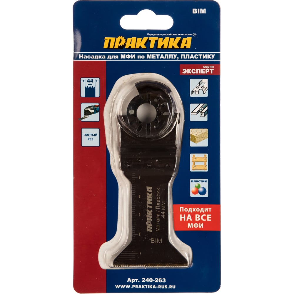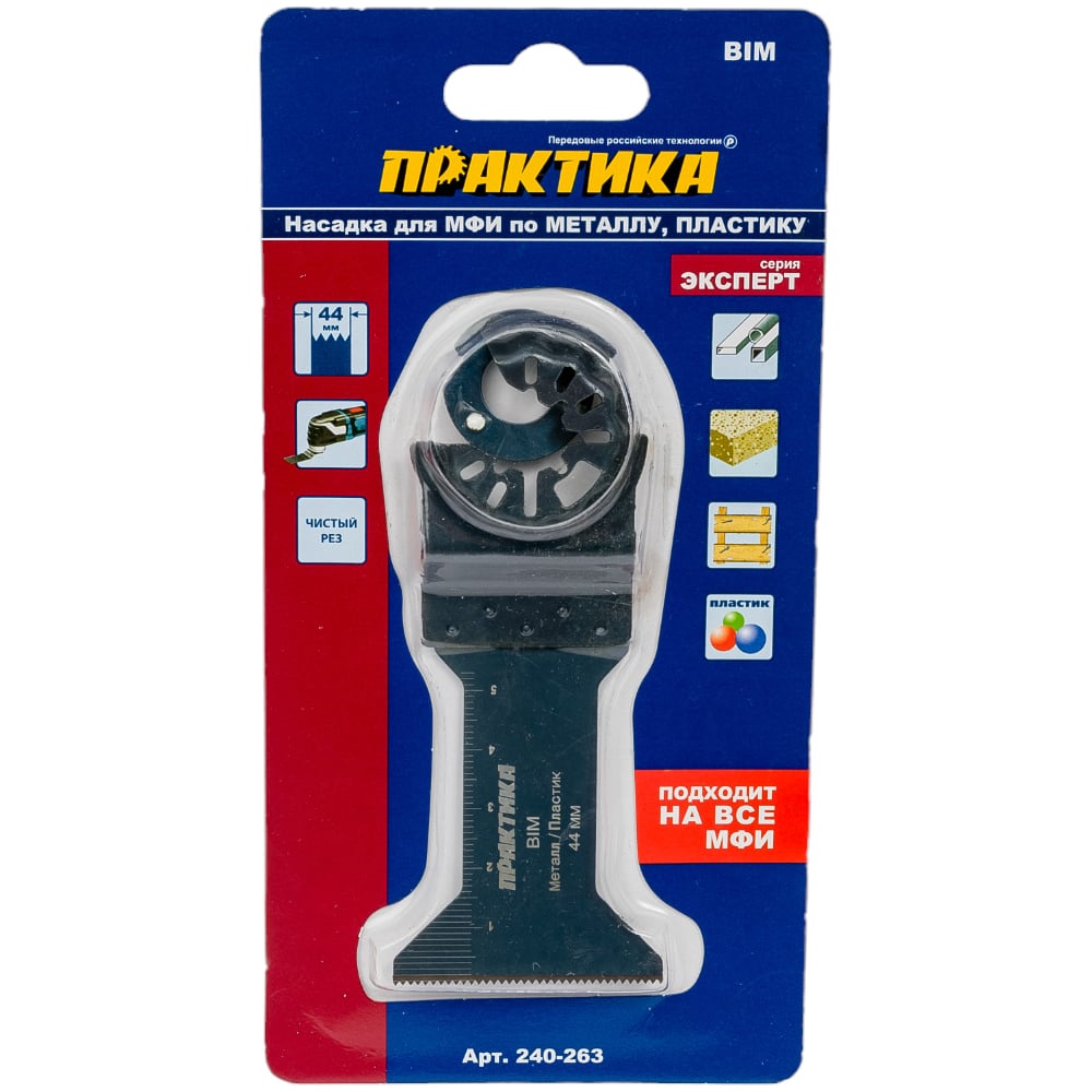 Режущая насадка для МФИ, по металлу и дереву ПРАКТИКА Т-образная, BiM, 44 мм, мелкий зуб 240-263