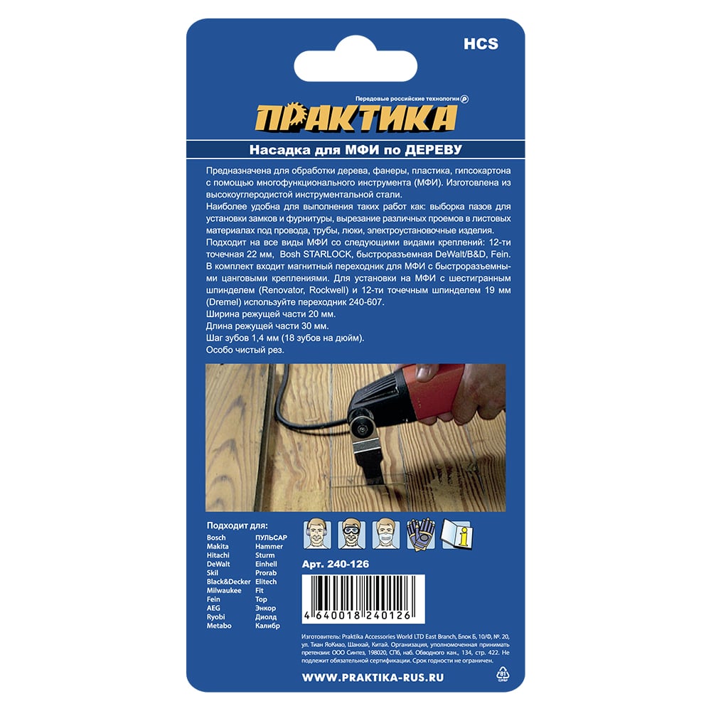 Режущая насадка для МФИ, по дереву ПРАКТИКА Т-образная, HCS, 28 мм, мелкий зуб 240-126