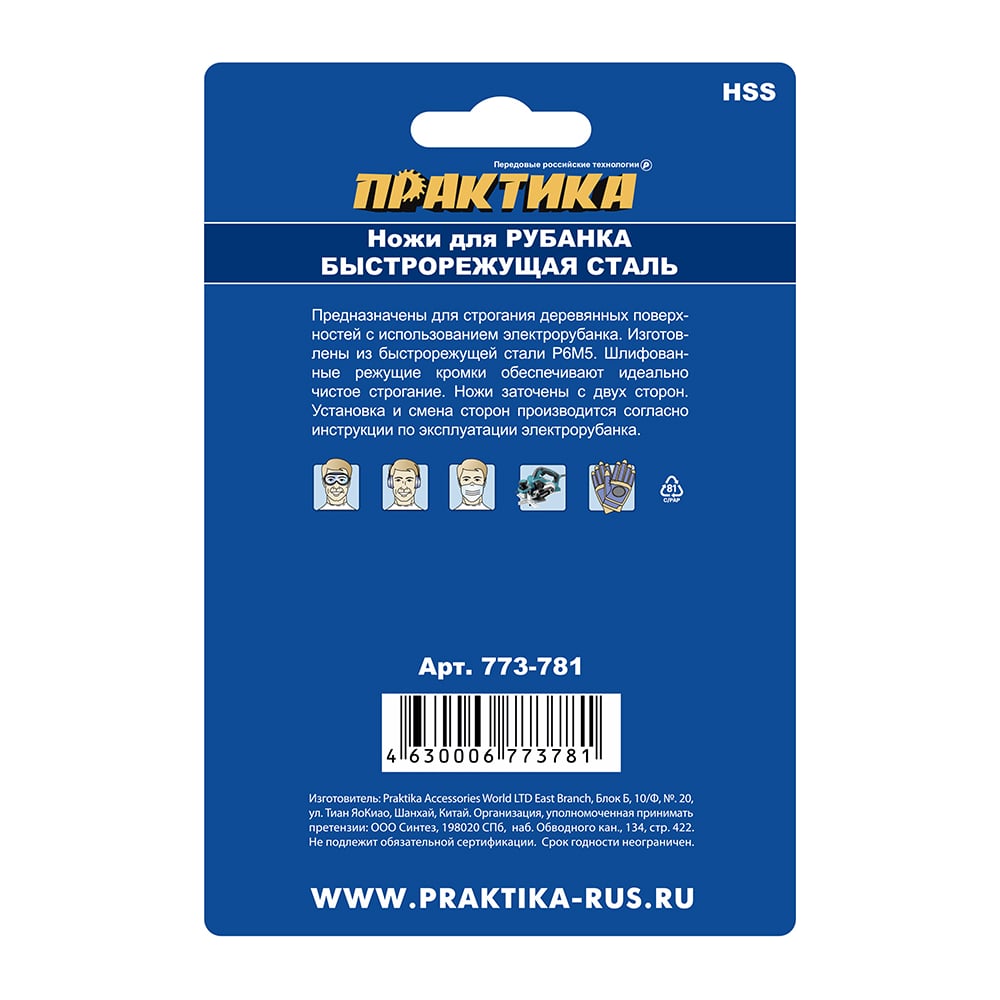 Практика ножи для рубанка 82x29x3мм 2 шт, блистер, hss для makita 1923h 1902 kp0810 773-781