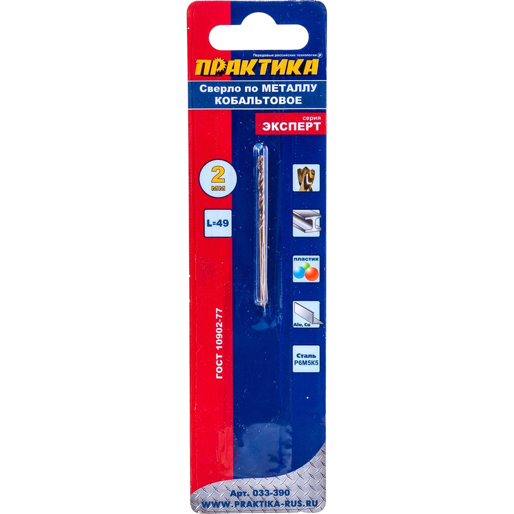 Сверло по металлу кобальтовое (2х49 мм) ПРАКТИКА 033-390
