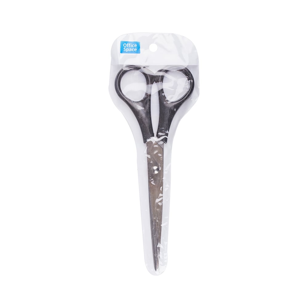 Ножницы Office Space 16,2см, черные ручки, ПВХ чехол с европодвесом S162B_6716