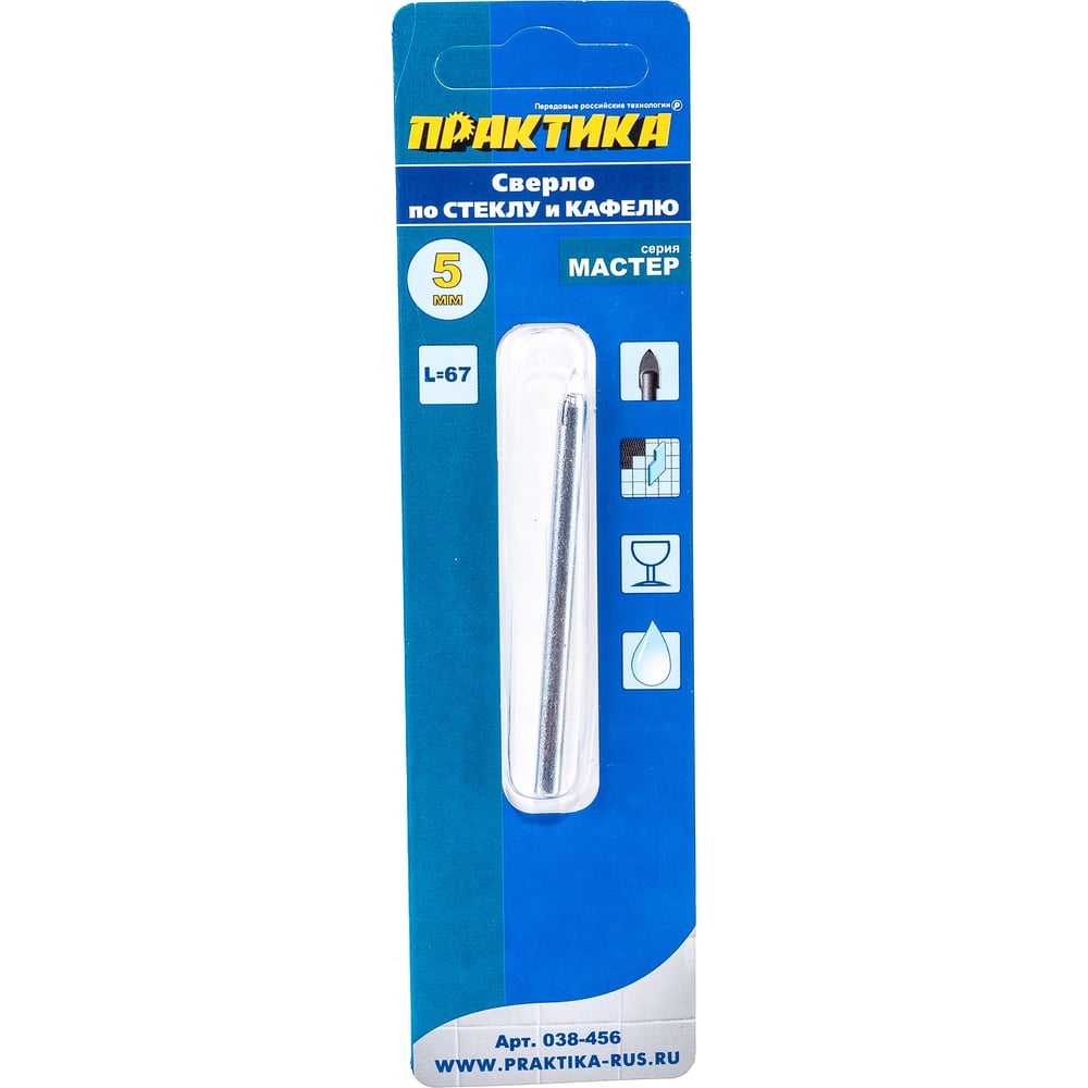 Практика сверло по стеклу ф 5мм блистер 038-456