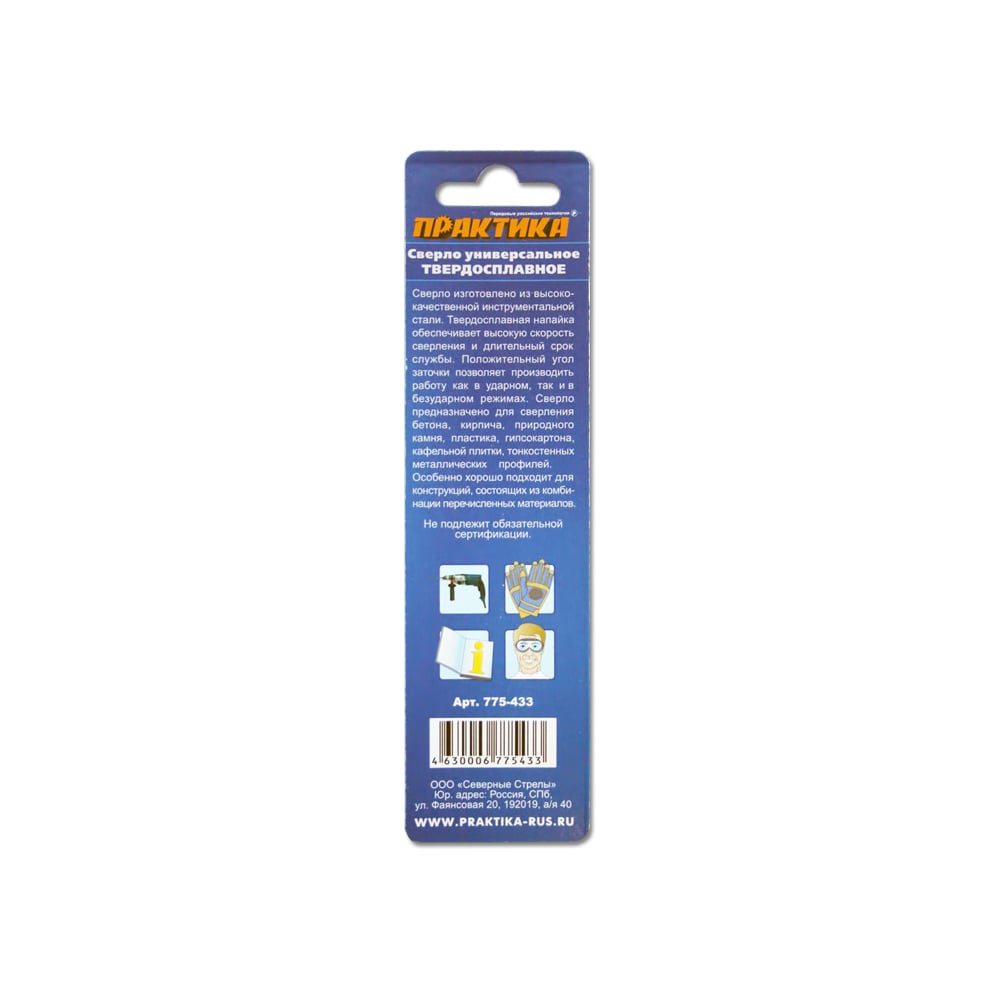 Сверло универсальное твердосплавное (4х70 мм) ПРАКТИКА 775-433