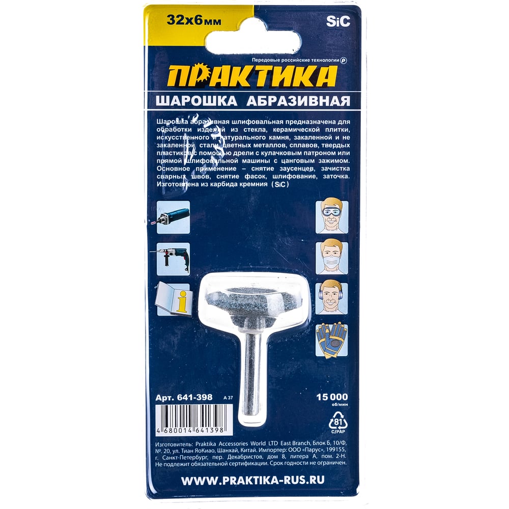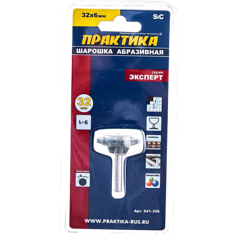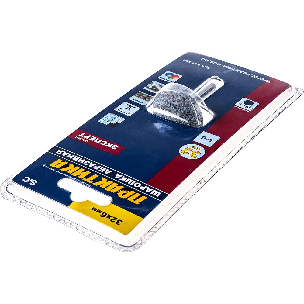 Практика шарошка абразив карбид кремния, дисковая 32x6мм, хвост 6мм, блистер 641-398