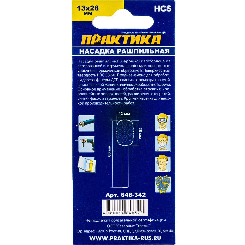 Шарошка стальная овальная по дереву (13х28 мм) ПРАКТИКА 648-342