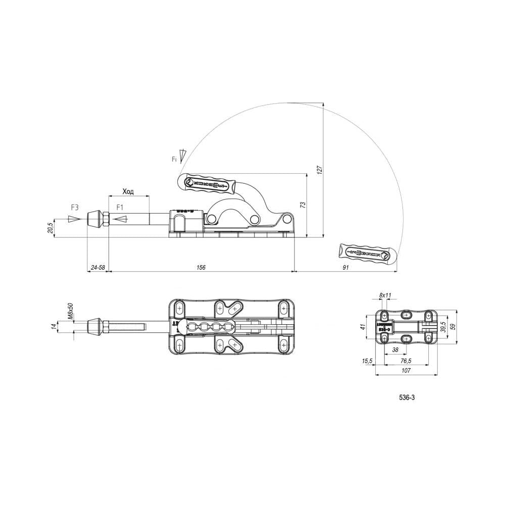Плунжерный зажим KUKAMET с кронштейном до 93 кг 536-3-Q14