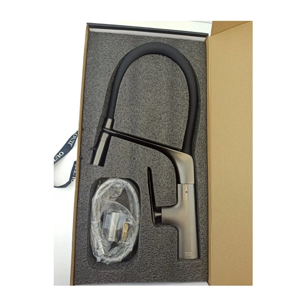 Смеситель для кухни OUTE из латуни цвет темно-серый, с гибким черным силиконовым изливом T11013BY