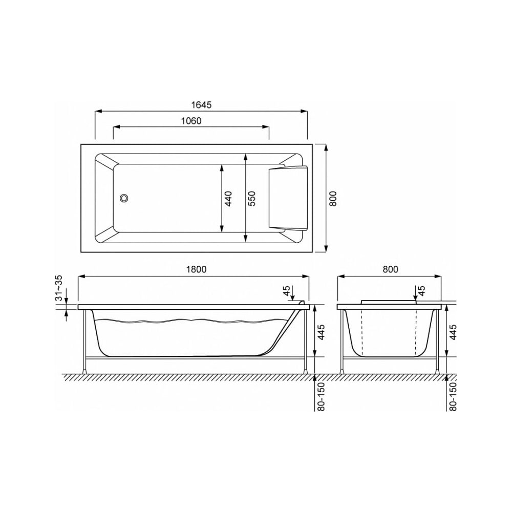 Длина 1800 мм Материал акрил Объем 240 л Ширина 800 мм Цвет белый Стиль современный Серия Sofa Форма прямоугольная Смеситель в комплекте нет Подсветка нет Толщина материала 4 мм Монтаж встраиваемая, пристенная Подголовник нет Ручки нет Антискользящее покрытие нет Диаметр выпуска (отверстия для слива) 52 мм Ножки в комплекте нет Гидромассаж нет Возможность установки экрана да С дверцей нет Двухместная нет С сиденьем нет Глубина ванны 445 мм Расположение перелива стандартное Панель в комплекте нет Высота с опорой 595 мм Каркас в комплекте нет Количество форсунок нет Возможность установки стеклянной шторки нет