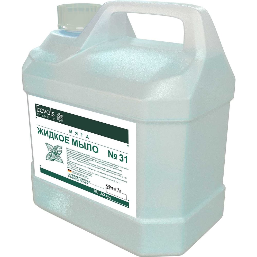 Жидкое увлажняющее мыло для рук Ecvols 31 с эфирными маслами мята, 3 л 00.31so3000