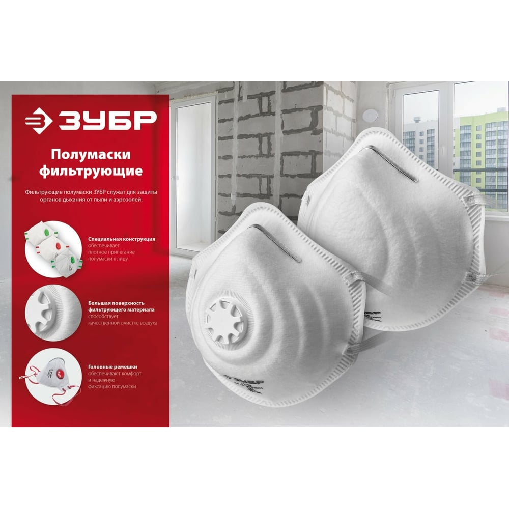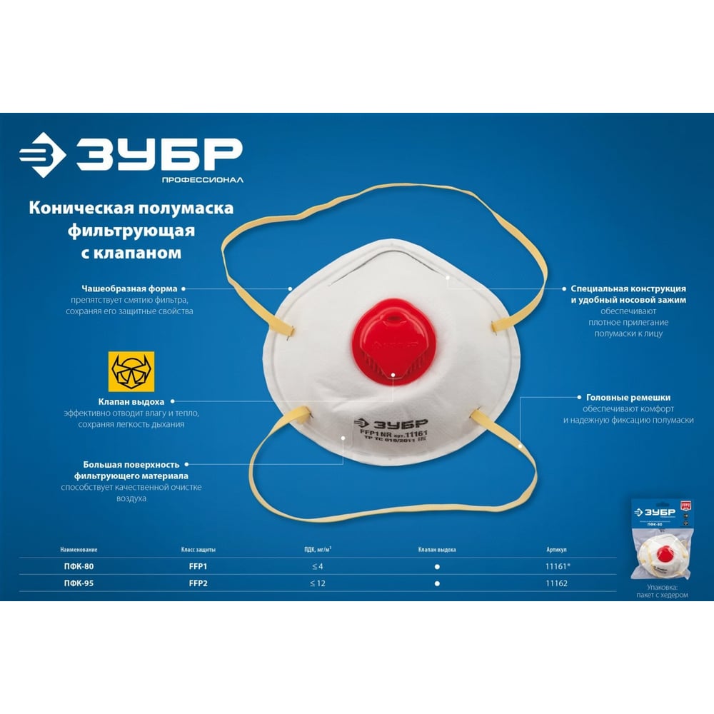 Коническая фильтрующая полумаска ЗУБР ПФК-95 FFP2 с клапаном 11162
